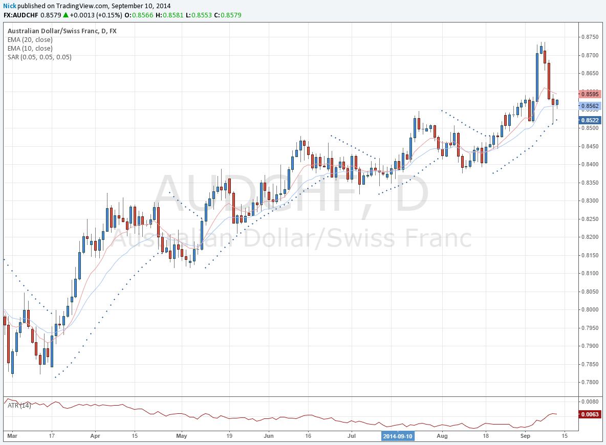 AUDCHF made a nice rejection bar with the trend yesterday - It closed in the wrong direction so I have decided to play it two ways